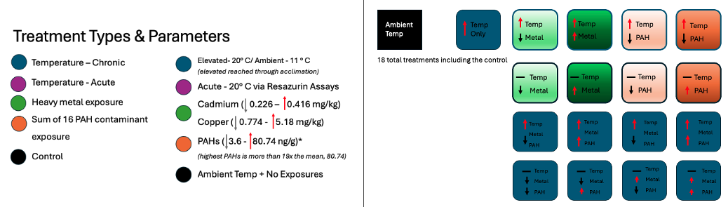 Acute elevated temperature exposure through the use of resazurin assays to mimic tidal fluctuations in warmer months.
